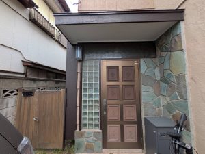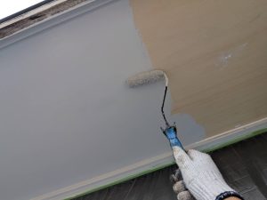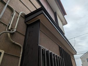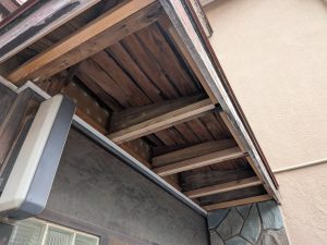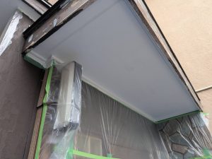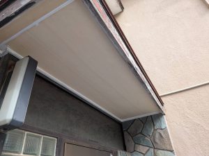 施工前は軒天部に腐食がありましたので、撤去後しっかりと下地補強した後、軒天張り、塗装工事となりました。