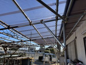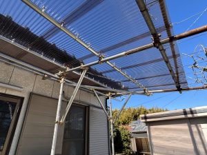 施工前は雨樋、波板、単管パイプがかなり酷い状態でした💦
